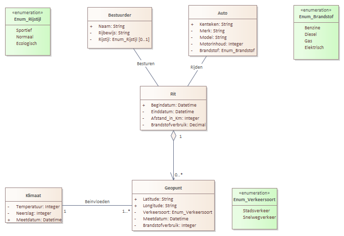 Uitwerking van het logische datamodel voor een app voor brandstofverbruik