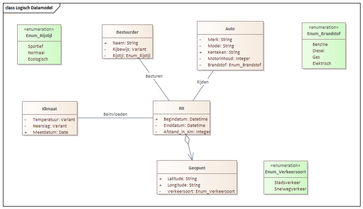 Uitwerking van het logische datamodel voor een app voor brandstofverbruik