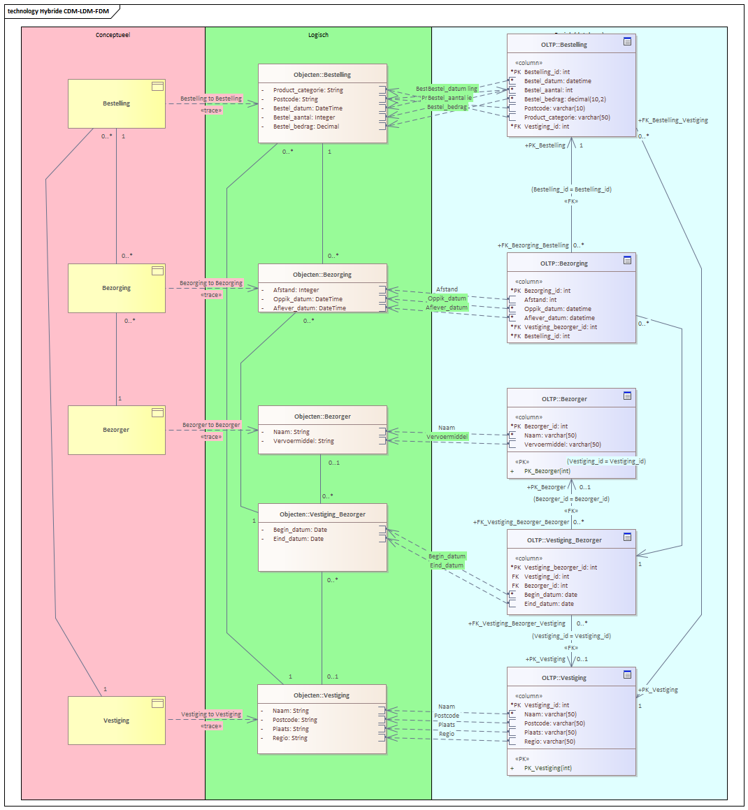 Koppeling tussen het Logisch Datamodel naar een aantal fysieke tabellen in het administratieve domein.