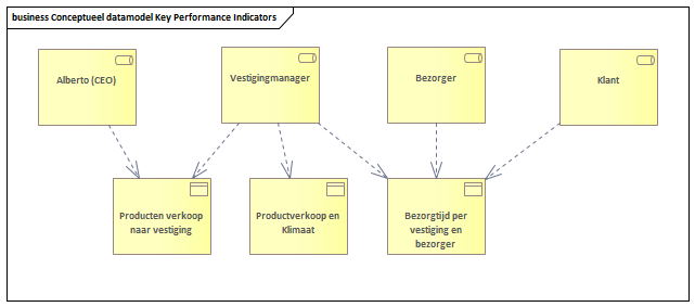 Voorbeeld van een model waarin de KPI entiteiten gerelateerd worden aan een aantal rollen in de organisatie