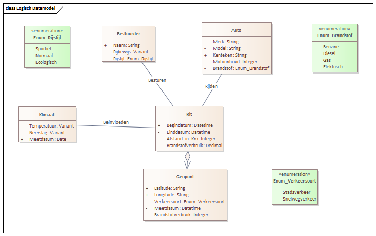 Uitwerking van het logische datamodel voor een app voor brandstofverbruik